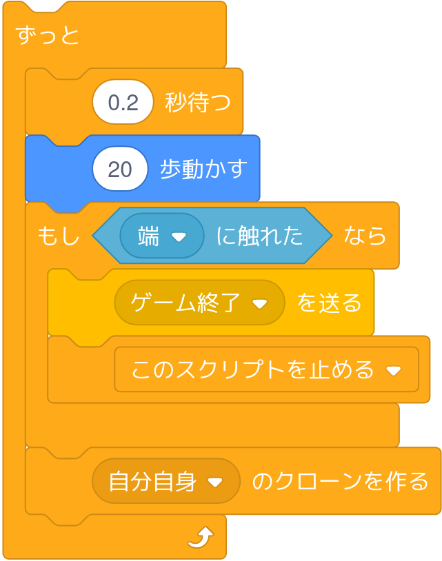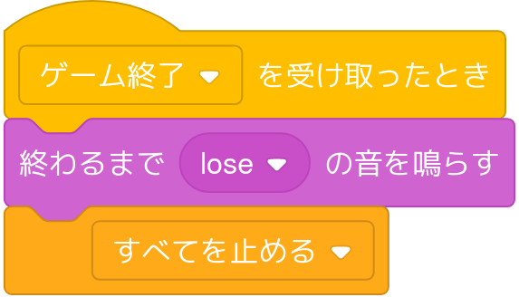 「[ゲーム終了]を送る」(「[メッセージ]を送る」の新しいメッセージを「ゲーム終了」にします)