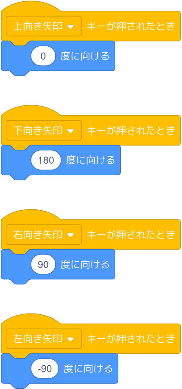 次に、へびをいろいろな方向に動くようにします。
