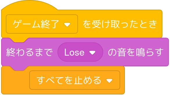 「[ゲーム終了]を送る」(「[メッセージ]を送る」の新しいメッセージを「ゲーム終了」にします)